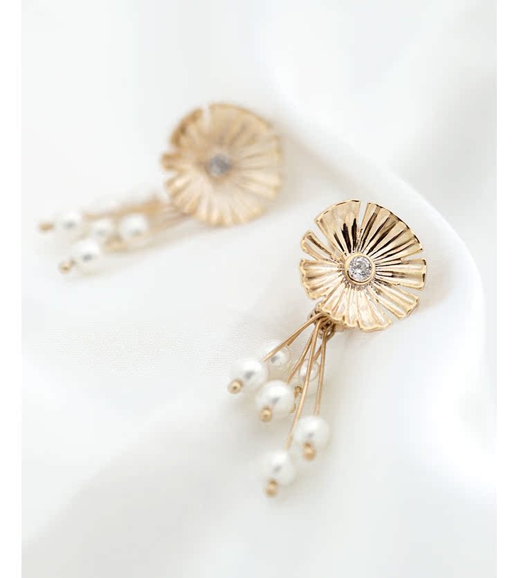 清新温柔气质雏菊花朵太阳花珍珠耳钉无耳洞耳夹女无痛日常