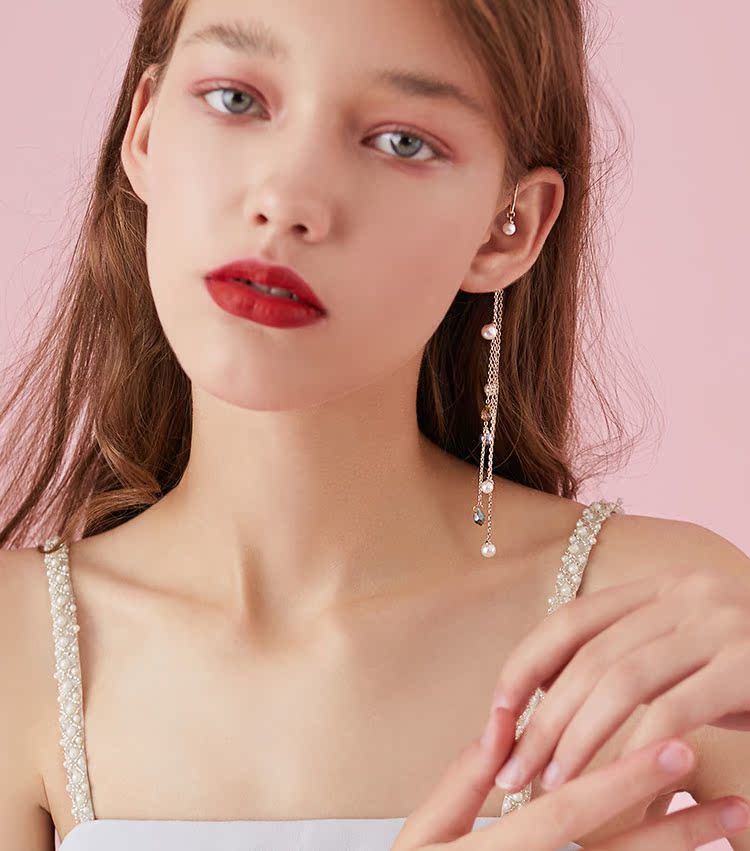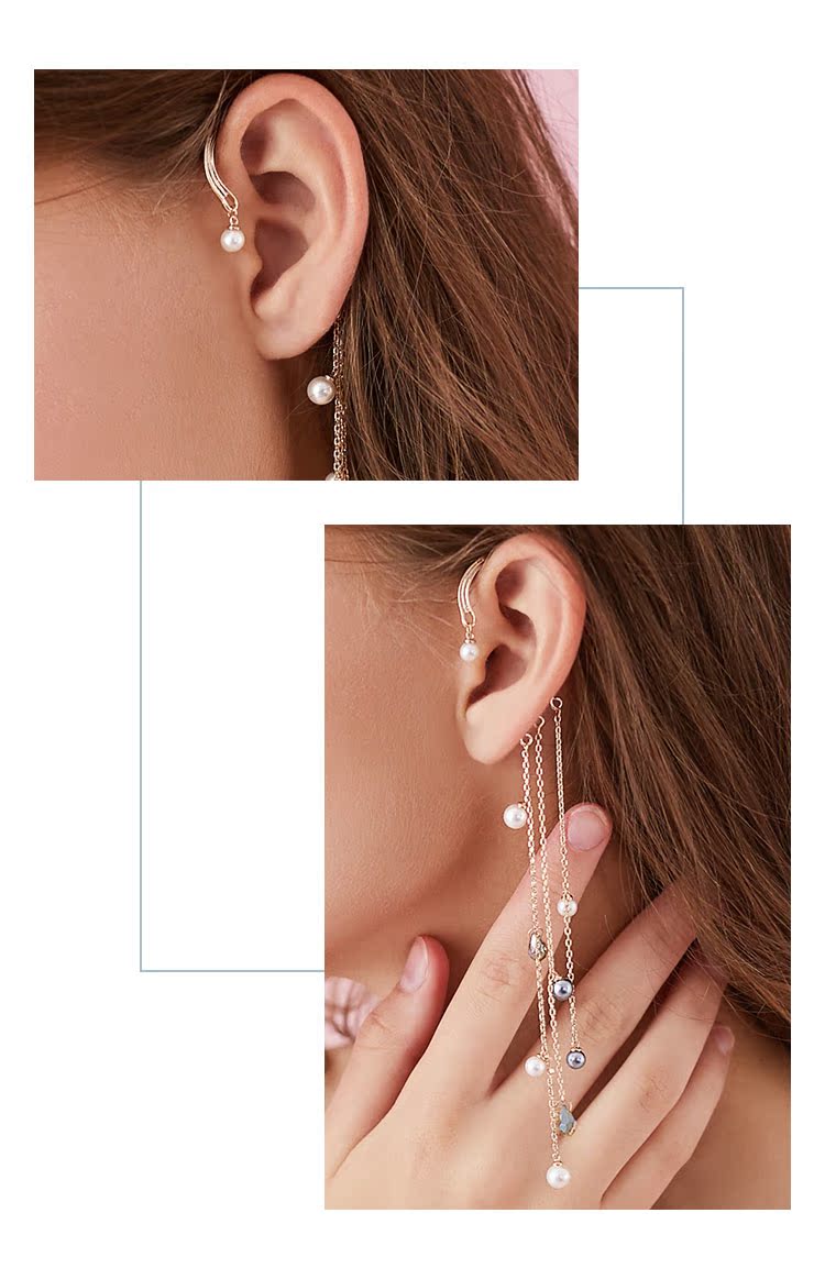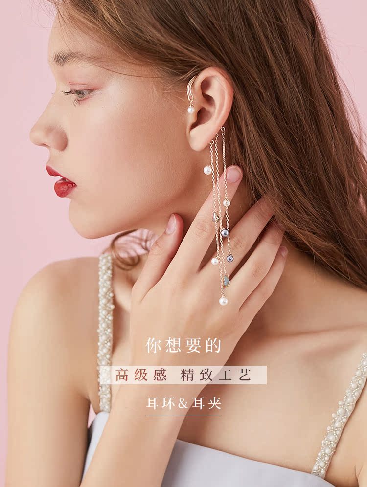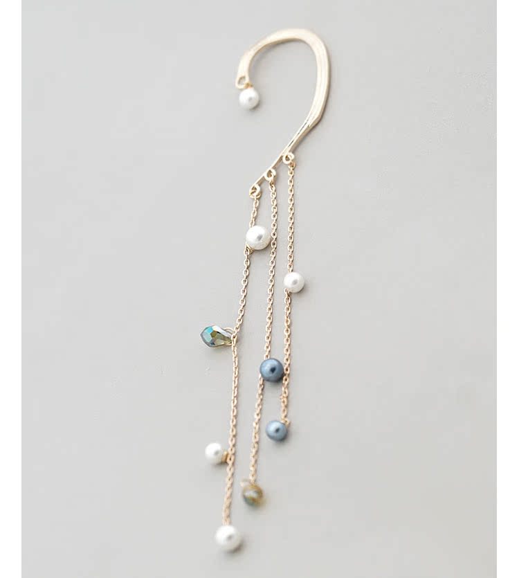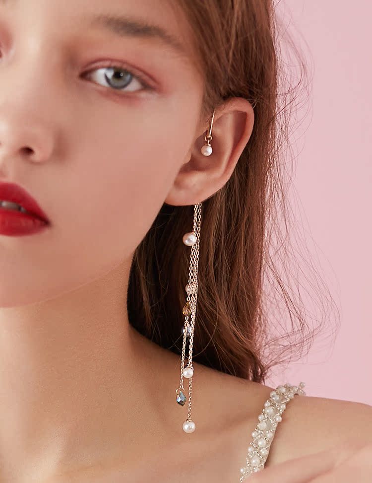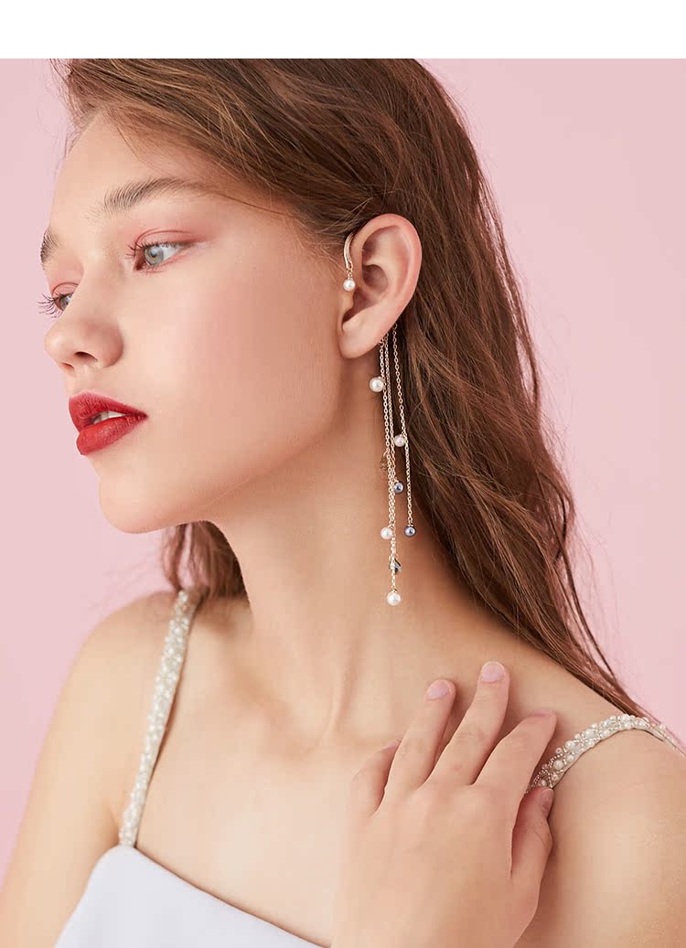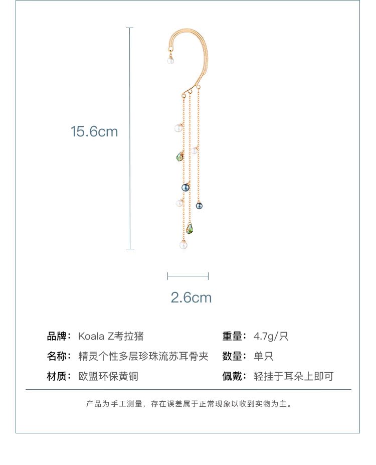 考拉猪 精灵个性耳挂 长款耳坠多层珍珠流苏耳骨夹无耳洞耳饰女