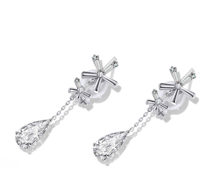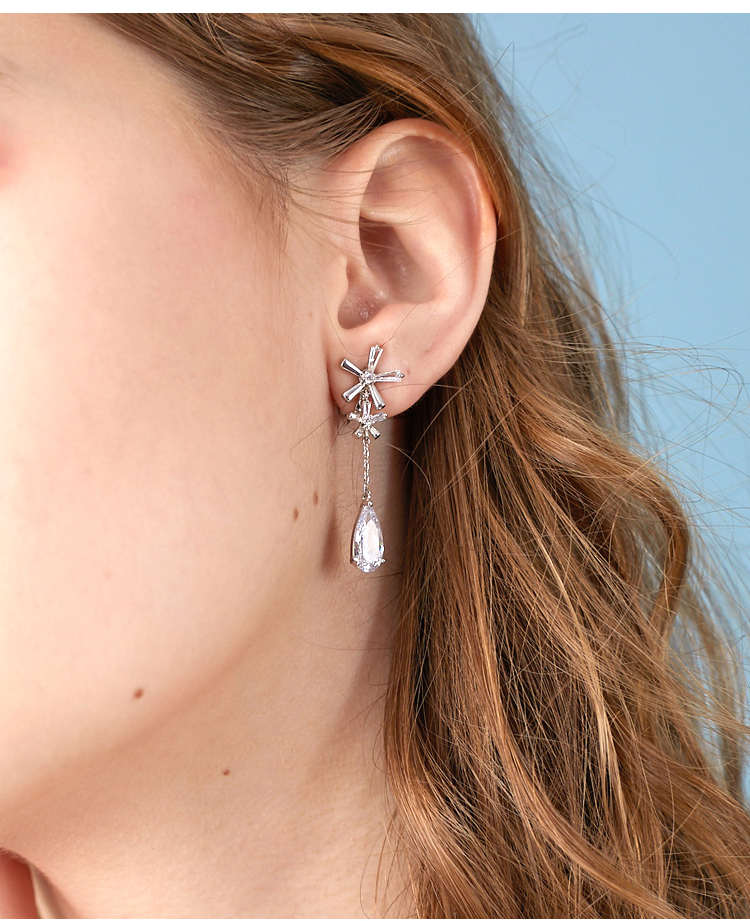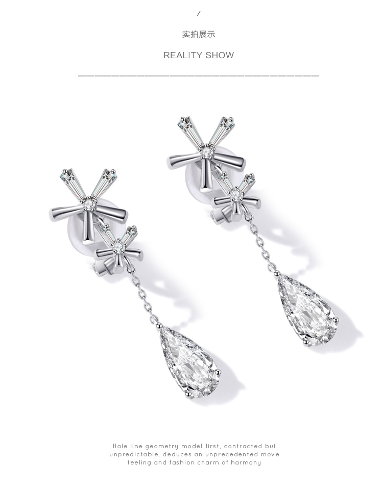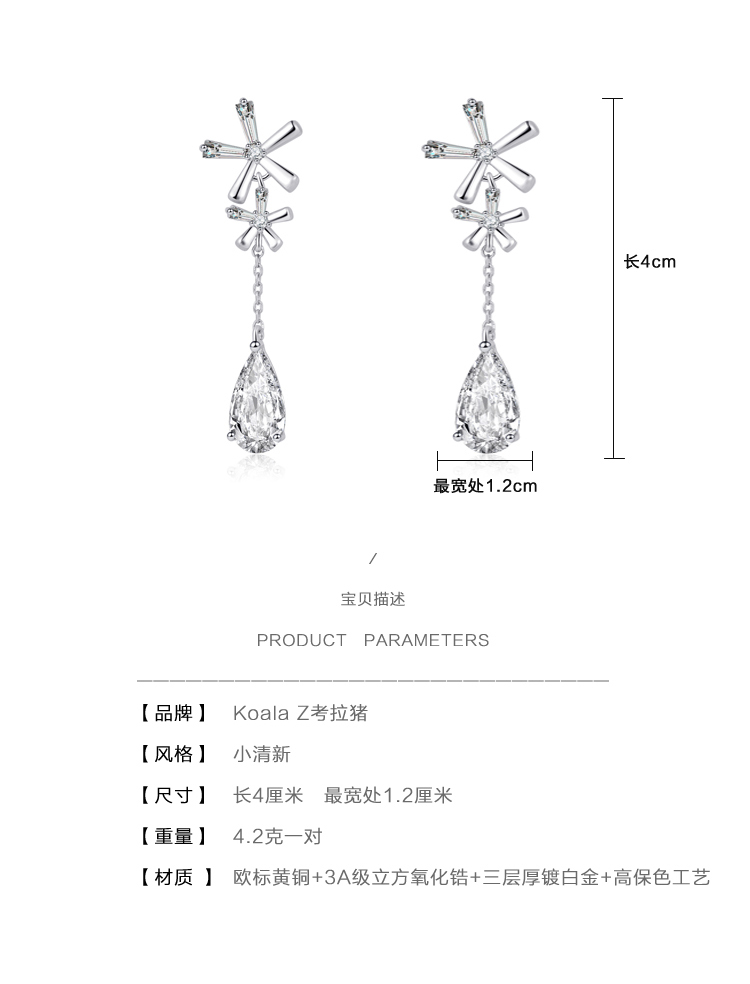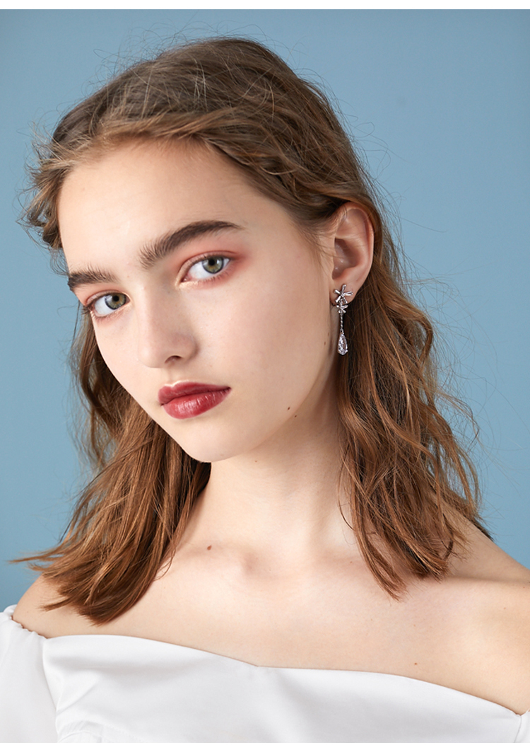 百搭显瘦 拼接花朵水滴小长款流苏水晶耳环耳钉无耳洞女耳夹韩国