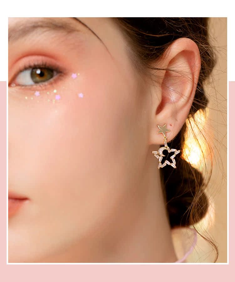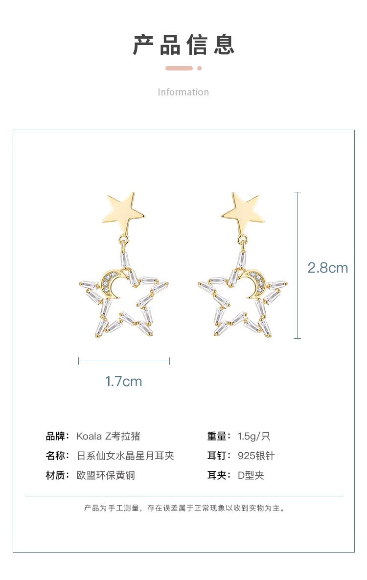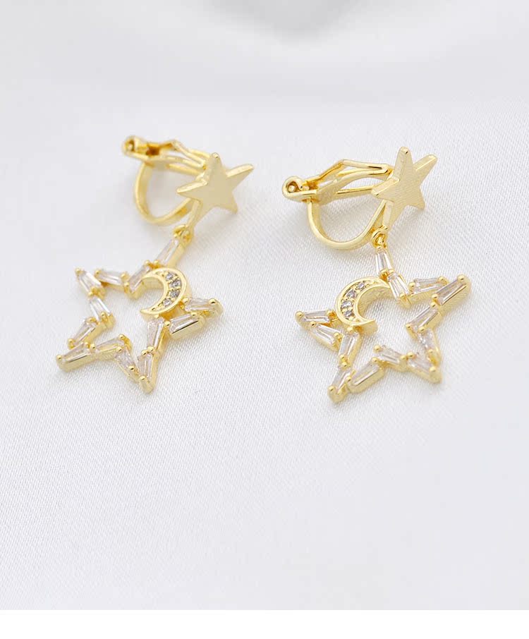 日系气质款小仙女五角星月亮水晶星月耳钉无耳洞无痛耳夹日常百搭