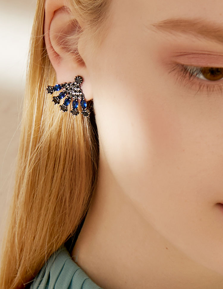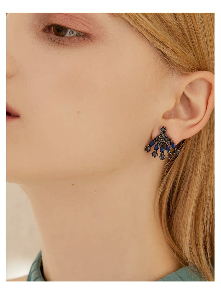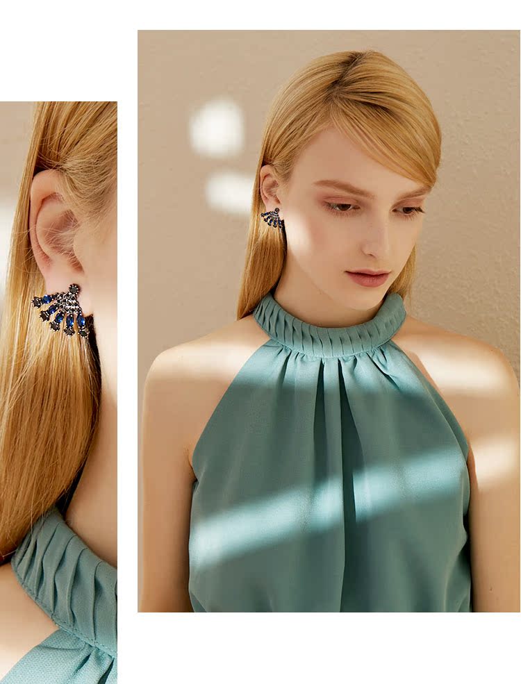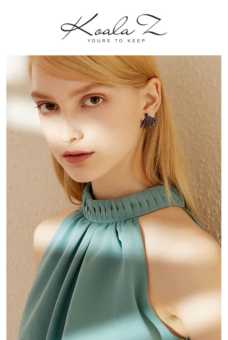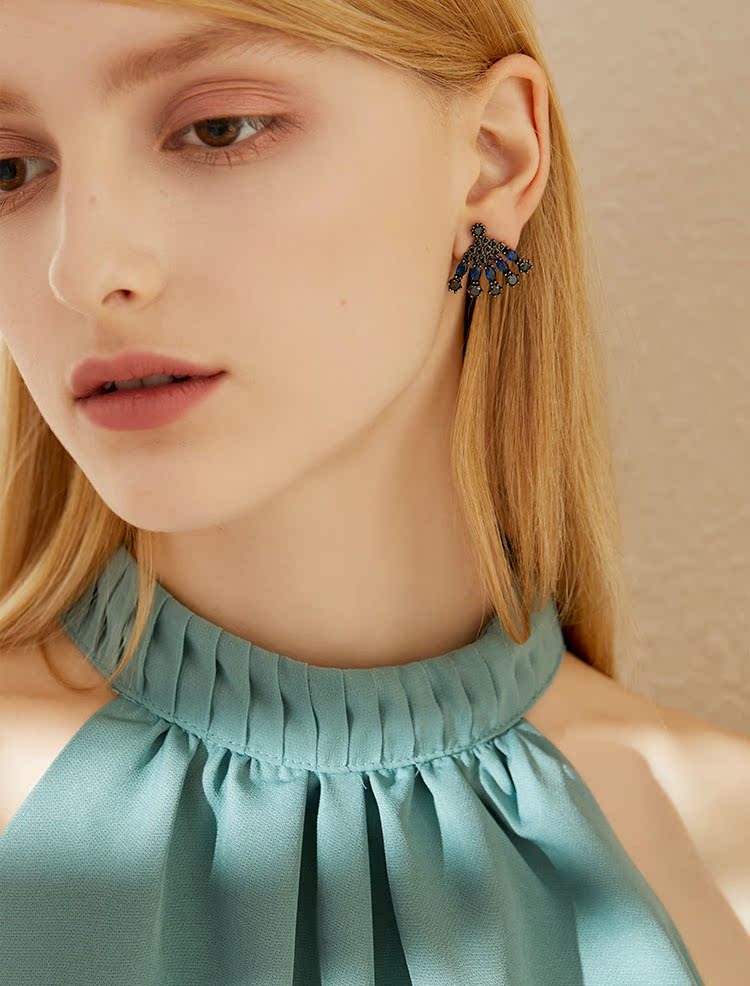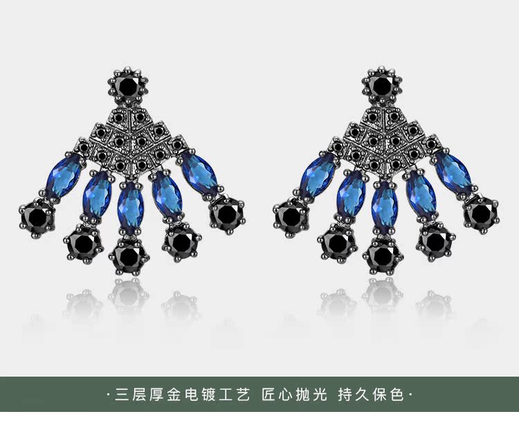 巴洛克百搭黑色扇形神秘美貌扇形耳钉无耳洞耳夹女无痛