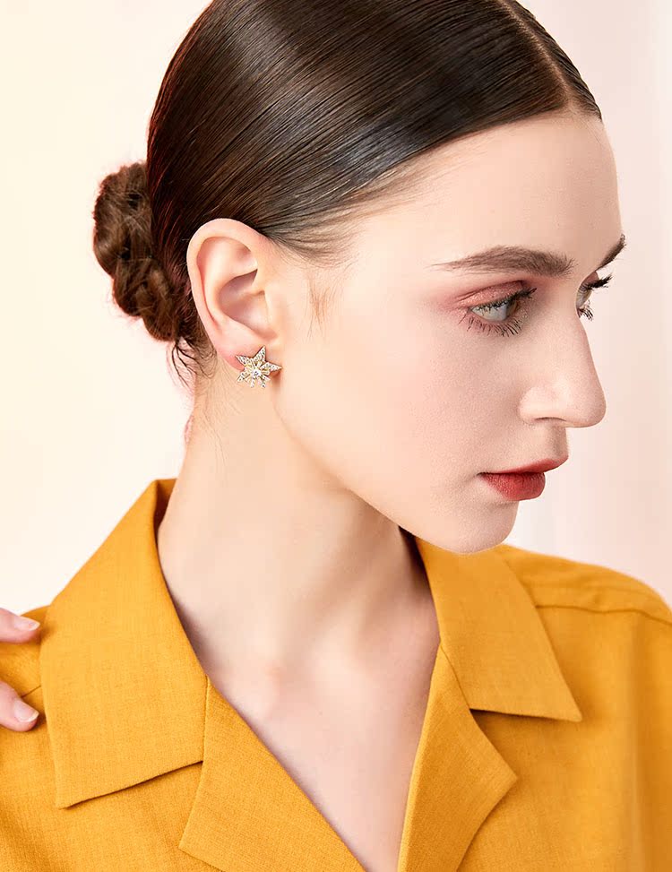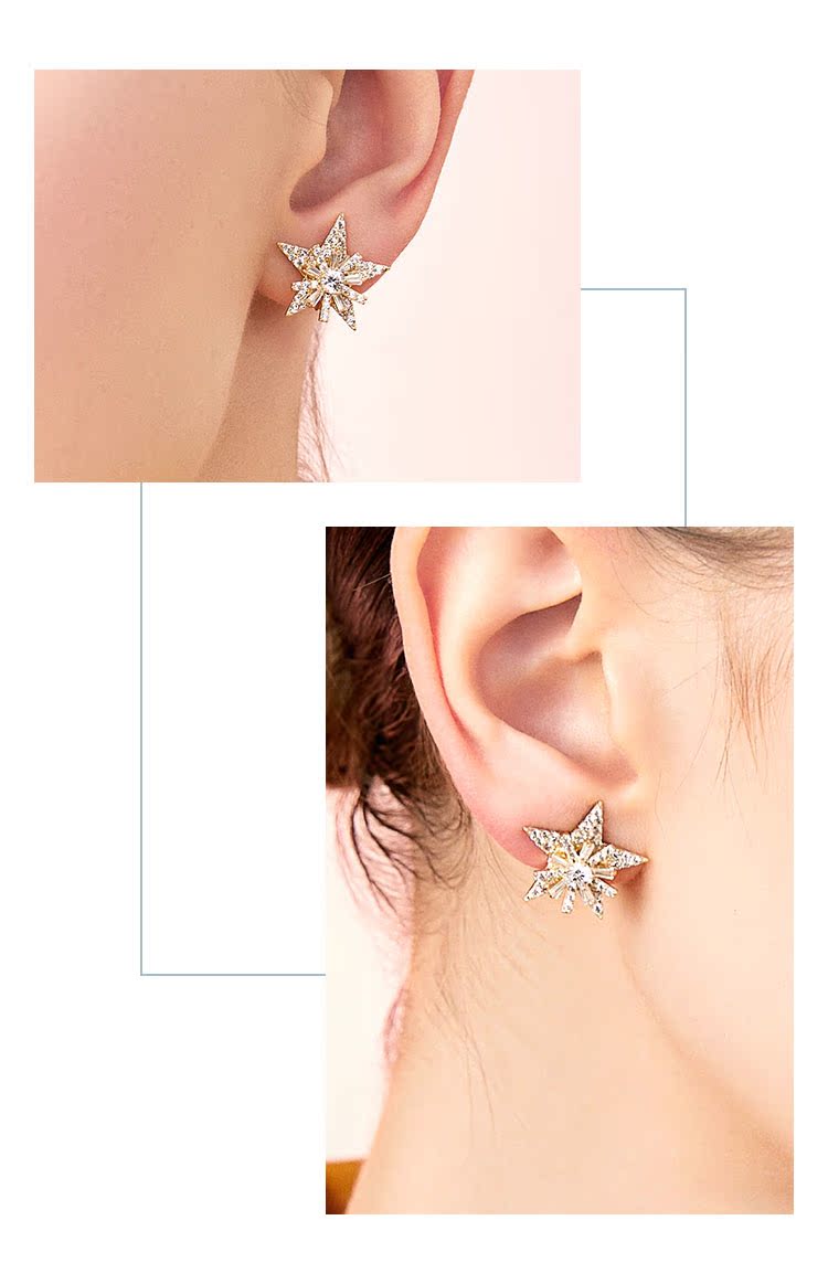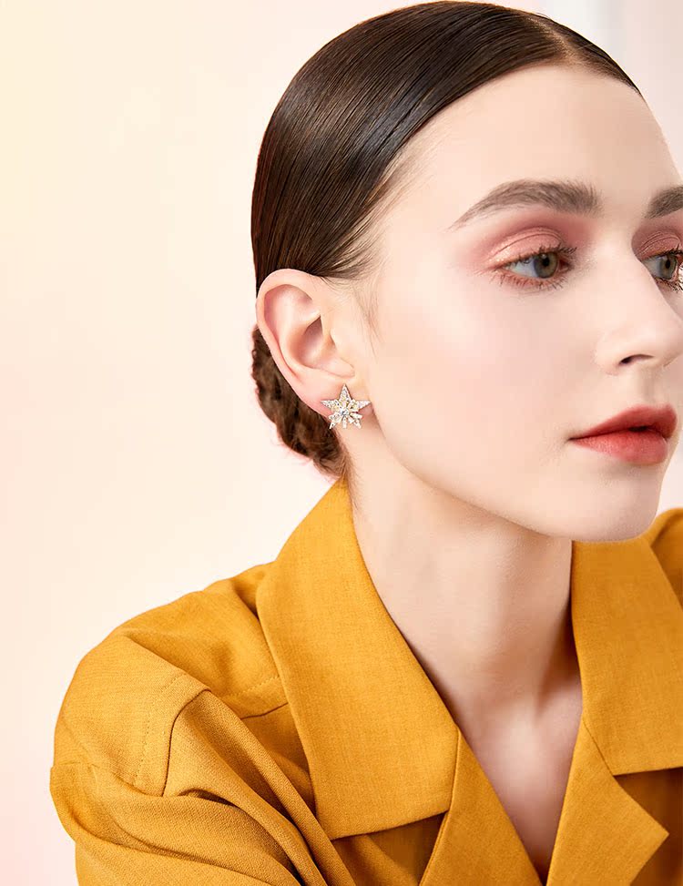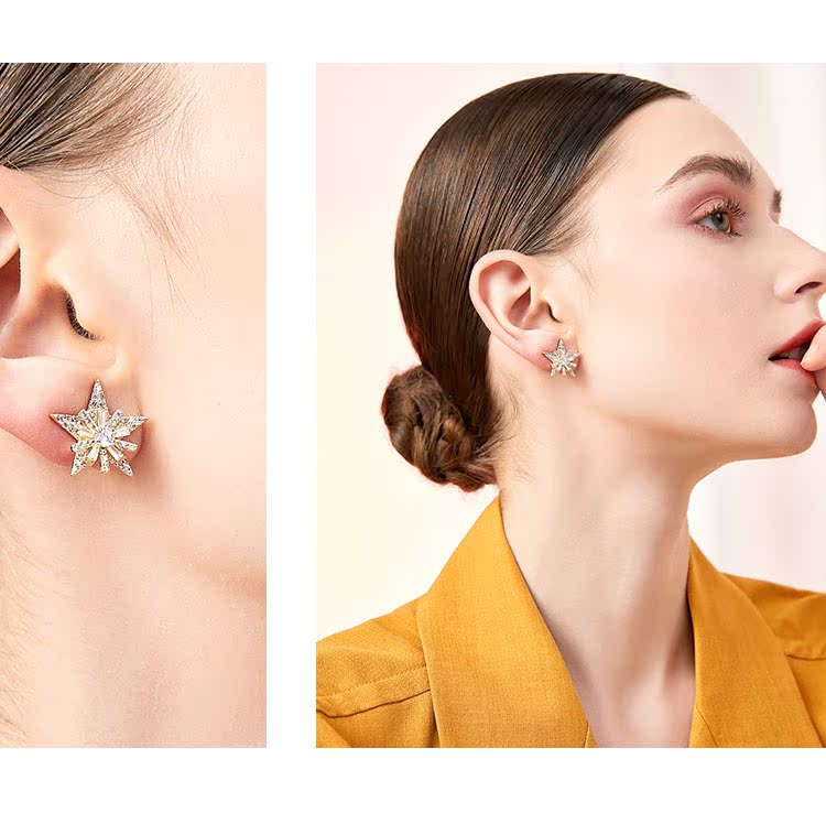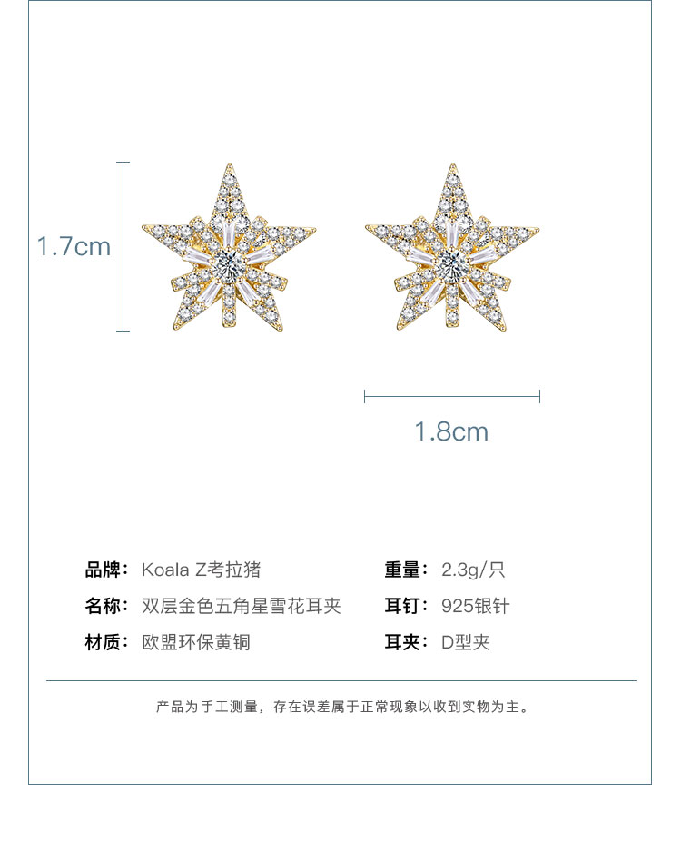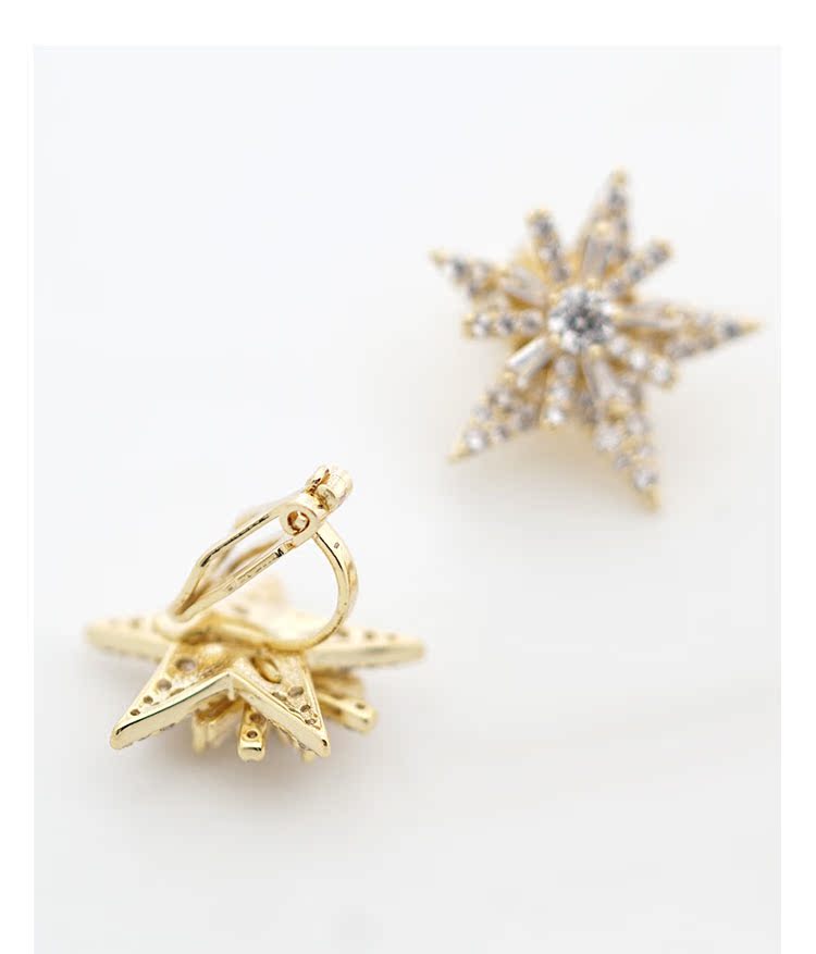 重工手作双层双色五角星雪花锆石气质耳钉耳环无耳洞耳夹女无百搭