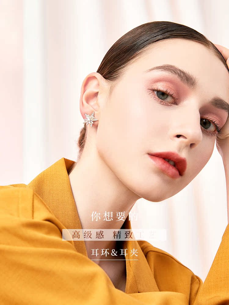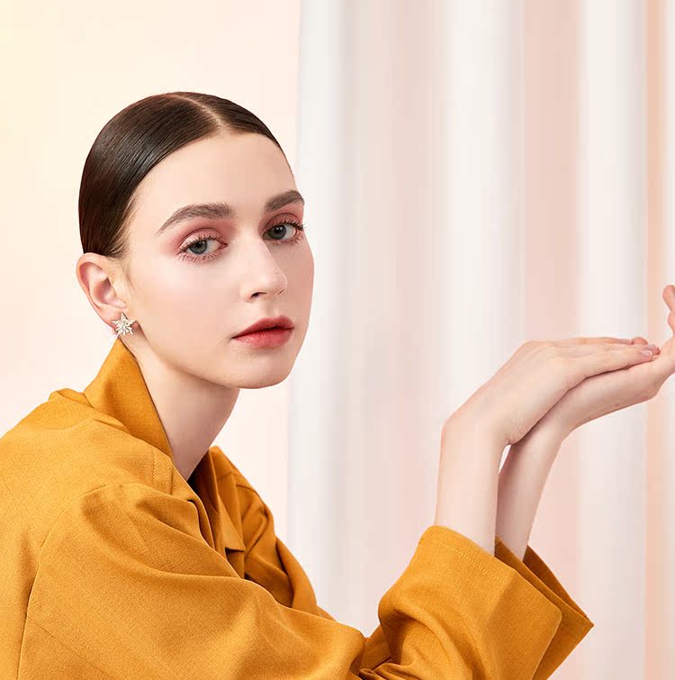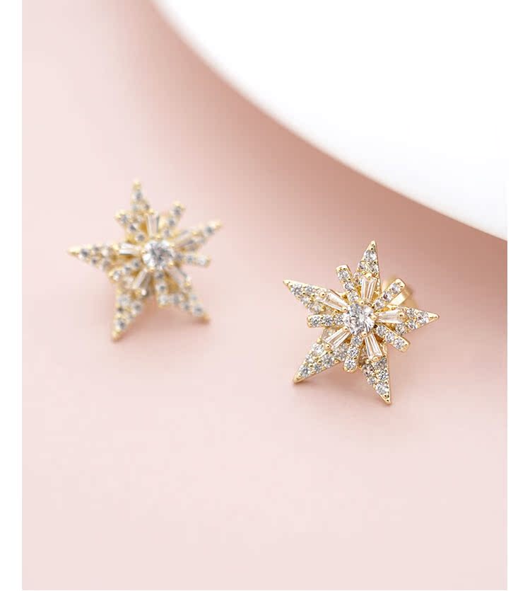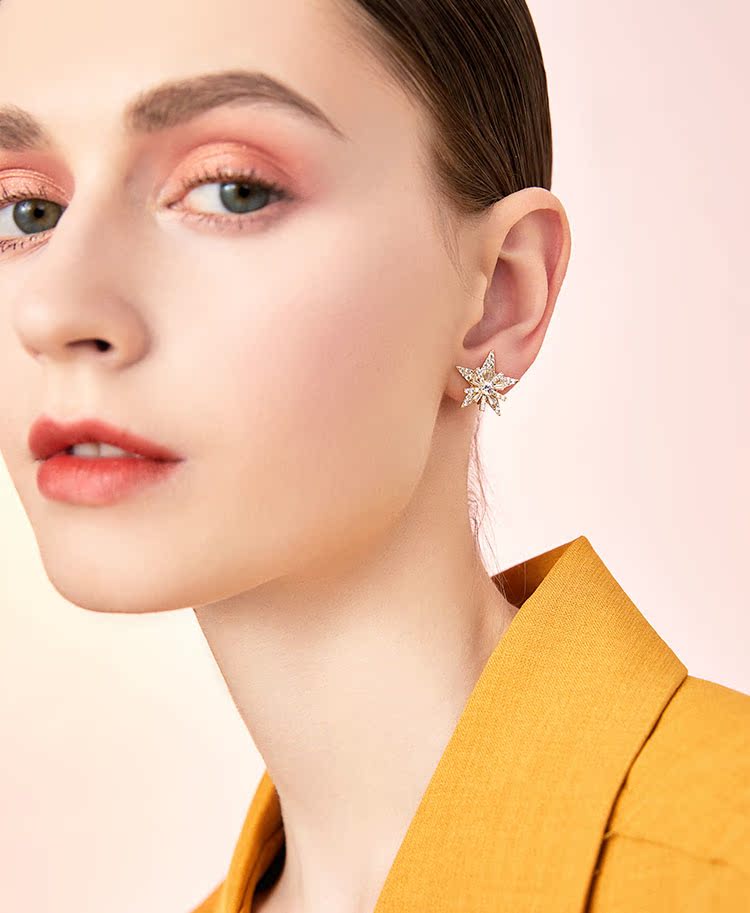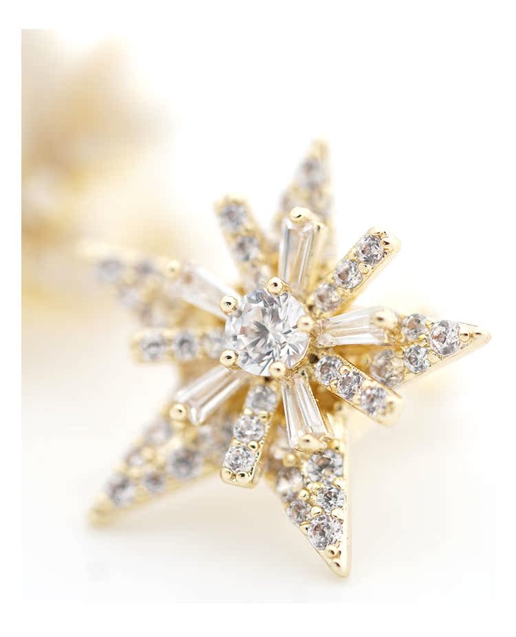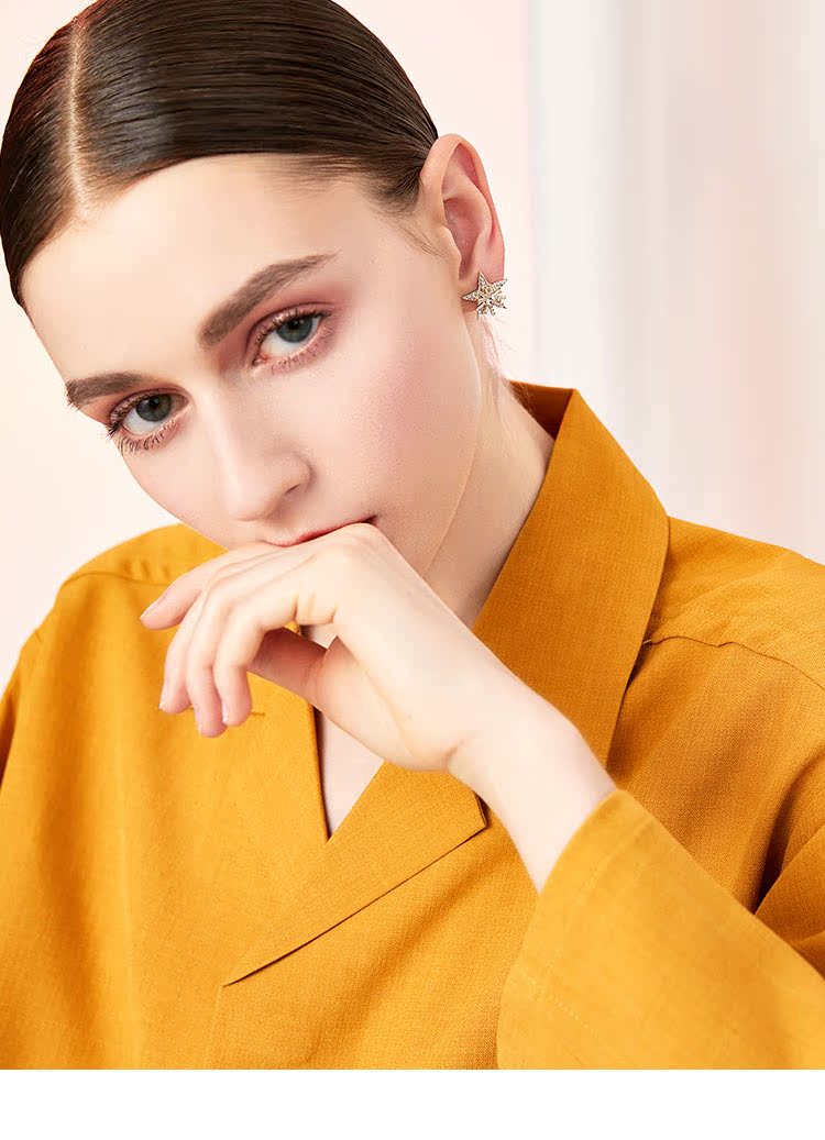 重工手作双层双色五角星雪花锆石气质耳钉耳环无耳洞耳夹女无百搭