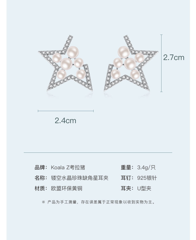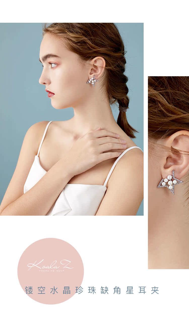 欧美 大气夸张镂空锆石水晶珍珠缺角五角星耳夹 无耳洞女无痛包邮