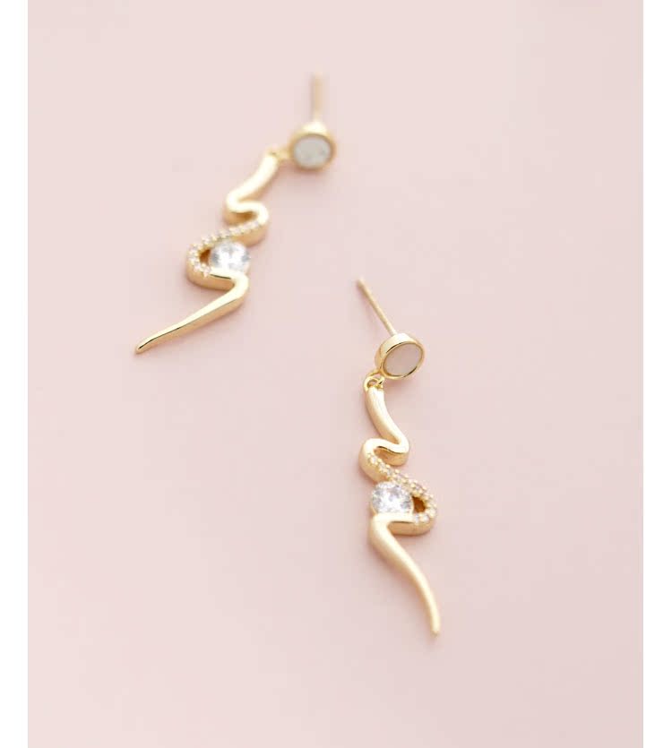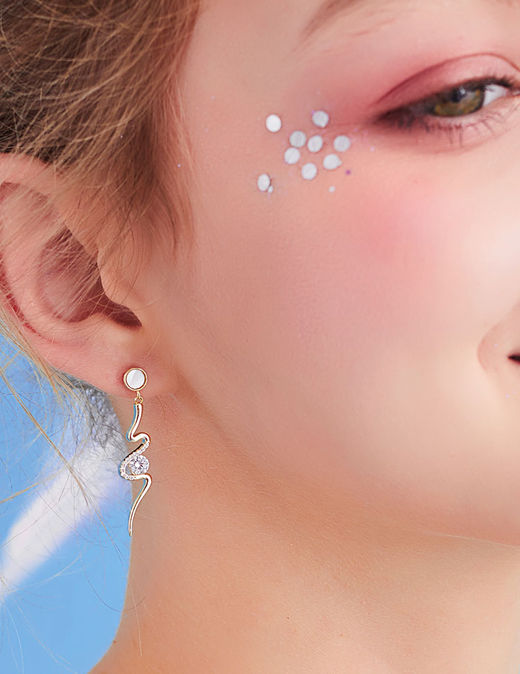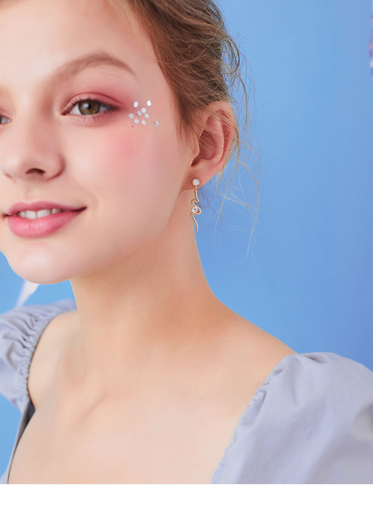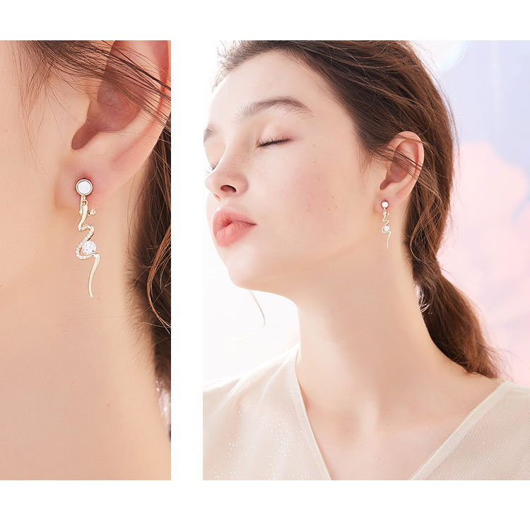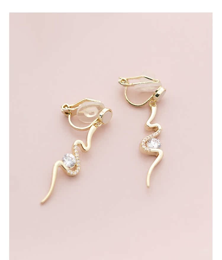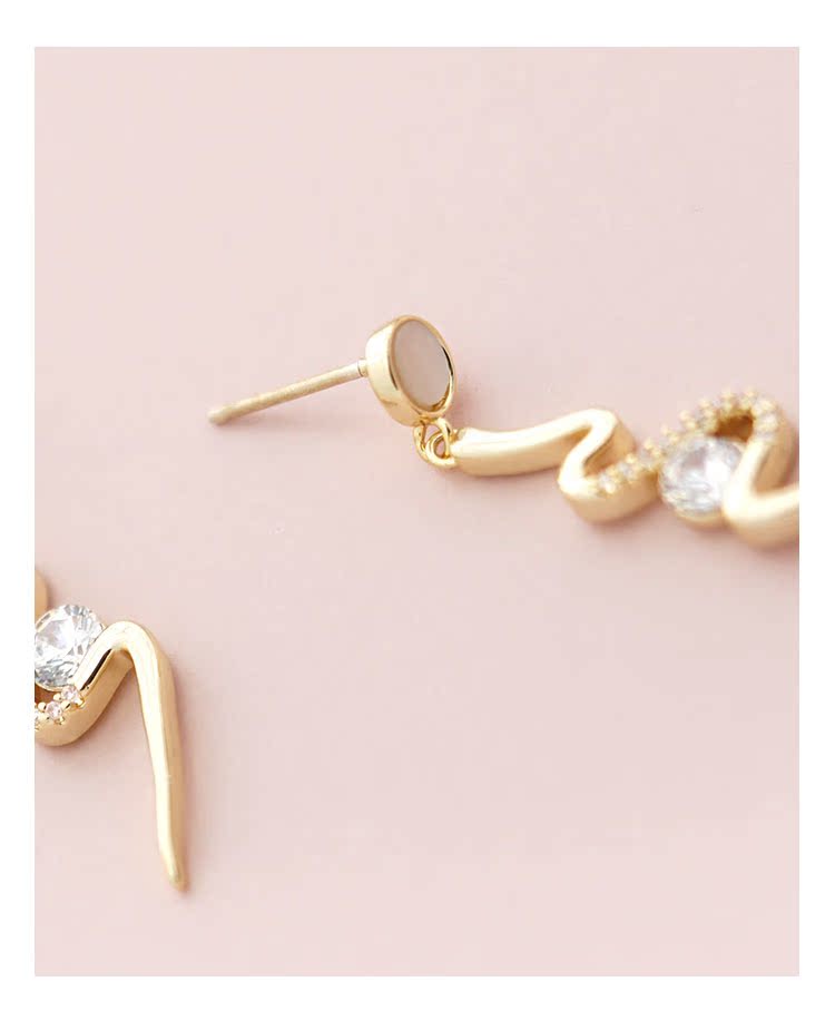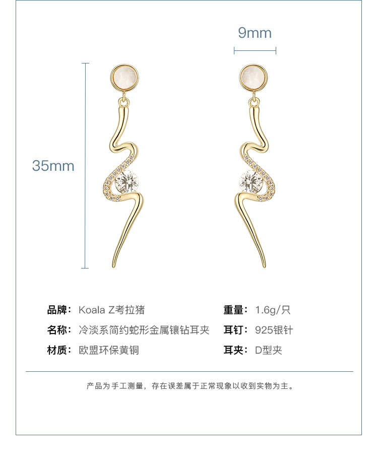 欧美风冷淡系简约设计S蛇形金色镶锆石耳钉耳环无痛无耳洞耳夹女
